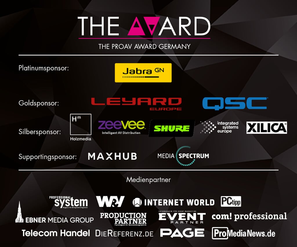Lassen Sie sich also nicht DAS Event der ProAV-Branche entgehen. Im Düsseldorfer CCD feiern wir nicht nur die Gewinner, sondern die ganze Branche. In exklusiver Atmosphäre ist es zudem ein Abend für gutes Essen und interessante Gespräche.