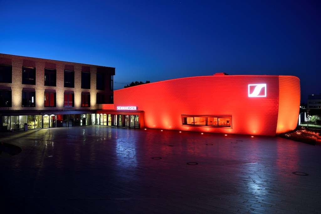 Im Rahmen der „Night of Light“ hat Sennheiser seinen Innovation Campus in rotes Licht getaucht, um auf die schwierige Lage der Veranstaltungsbranche aufmerksam zu machen