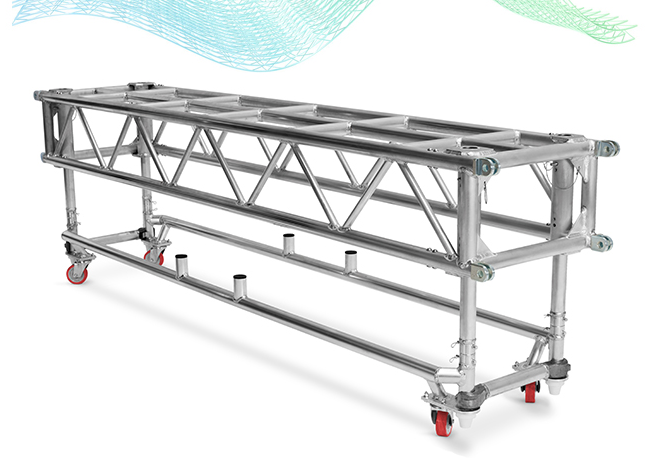 Die PR60 „Pre-Rig Truss“ von Litec und sein spezielles Zubehörprogramm sollen die dauerhafte Befestigung, Lagerung und den Transport einer breiten Palette von Beleuchtungsgeräten ermöglichen. Jeder Vormontage-Dolly verfügt über abnehmbare Beine und Laufrollenrahmen für vereinfachten Transport und Manövrierfähigkeit während des Ein- und Ausladens. Das Verstrebungsmuster, das sich auf der Oberseite der Traverse befindet, bietet mehrere Befestigungspositionen für viele Arten von Beleuchtungskörpern, die direkt an der Traverse oder über einer dedizierten Beleuchtungsleiste angebracht sind.