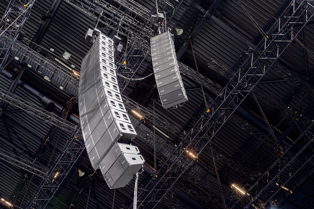 Fabian Romé setzte mit Technology for Events und dem dBTechnologies Team eine große Anzahl an Modulen ein. Rechts und links der Bühne hingen 12 Einheiten des aktiven Drei-Wege Line Arrays Vio L212 als Main PA plus 2× Vio 1610 als Downfill. Als Sidefill, ebenfalls direkt rechts und links vor der Bühne hängend, kamen jeweils 12 Einheiten des Vio L208 Modells zum Einsatz. An der Bühnenkante platzierte das Team von Technology for Events 8× Ingenia IG1T als Nearfill. Komplettiert wurde die PA-Anlage durch 12× Vio S218 Subwoofer in Cardioid Aufstellung direkt vor der Bühne.