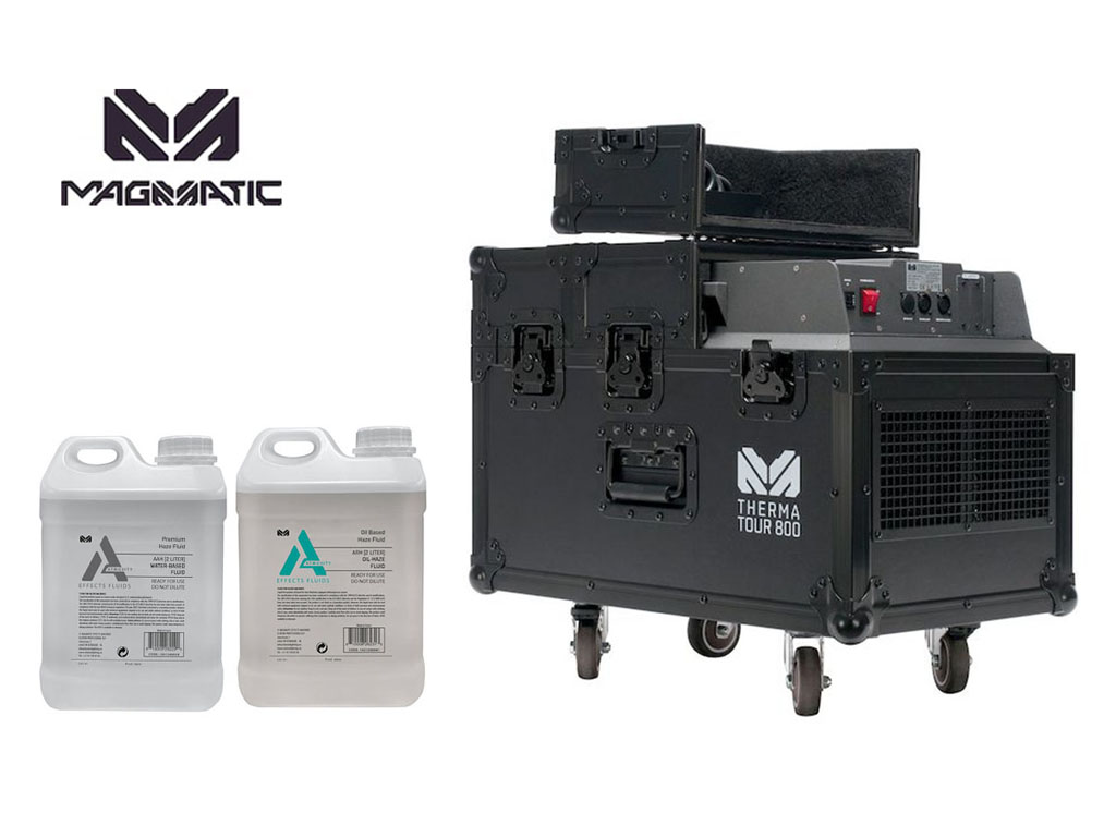 Innerhalb der Thermatic-Serie liefert Magmatic aktuell zwei Hazer auf Kompressor-Basis. Therma Tour 600 und Therma Tour 800 sind technisch vergleichbar, variieren aber in puncto Ausstoßmenge und Ausstattung.