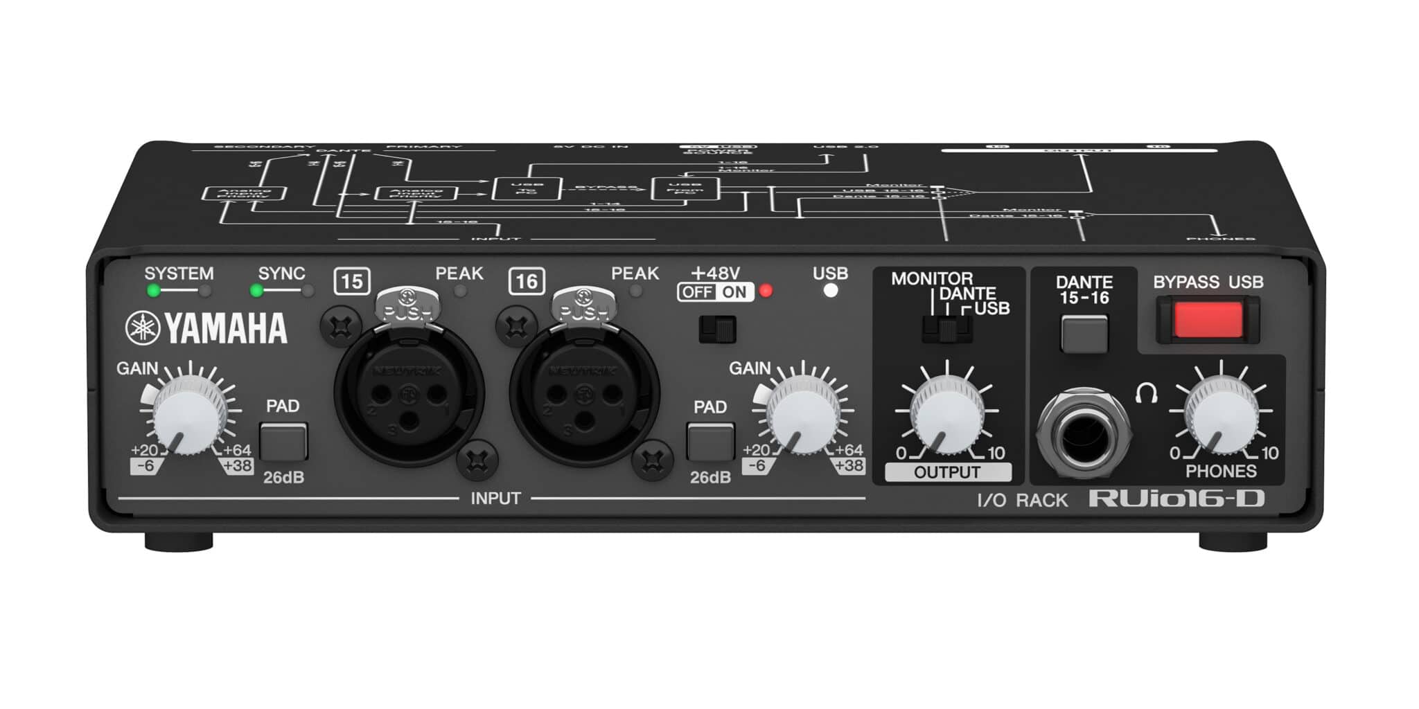 Das RUio16-D verfügt über 16 Dante-Eingänge und 16 Dante-Ausgänge, einen hochwertigen Mikrofonvorverstärker und zwei analoge Audioeingänge und -ausgänge mit Phantomspeisung, so dass es auch als Interface für akustische Messungen verwendet werden könne. Außerdem verfügt es über einen unabhängigen Gain-Regler mit Pad-Schalter für jeden analogen Eingang, einen umschaltbaren Monitor/Dante/USB-Ausgangspegelregler und einen Kopfhörerausgang mit Lautstärkeregler.