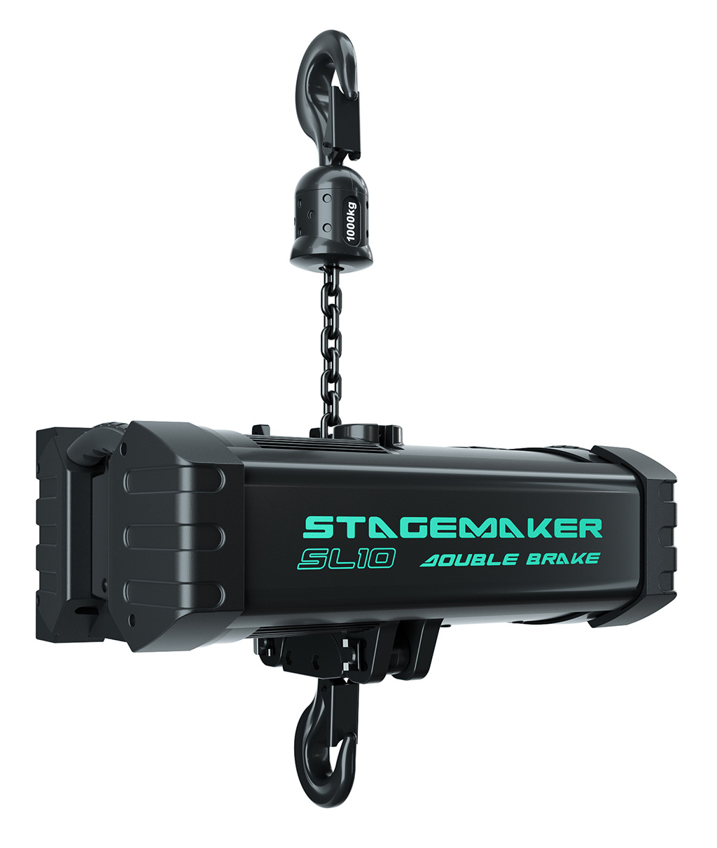 Mit ihrem ergonomischen Design sollen die Stagemaker-Kettenzüge die einzigen auf dem Markt sein, die standardmäßig mit Doppelbremse, einklappbaren Handgriffen und schützenden Gummiprotektoren ausgestattet sind. Darüber hinaus befinden sich die neuen Modelle SL5 und SL10 zurzeit in der Zertifizierung nach Schutzklasse IP66. Geschützt wird das Gehäuse des Kettenzugs von einer 70 μm starken schwarzen Epoxid-Pulverlackierung, die selbst extremen Bedingungen standhält (-10 C° bis +40 C°).