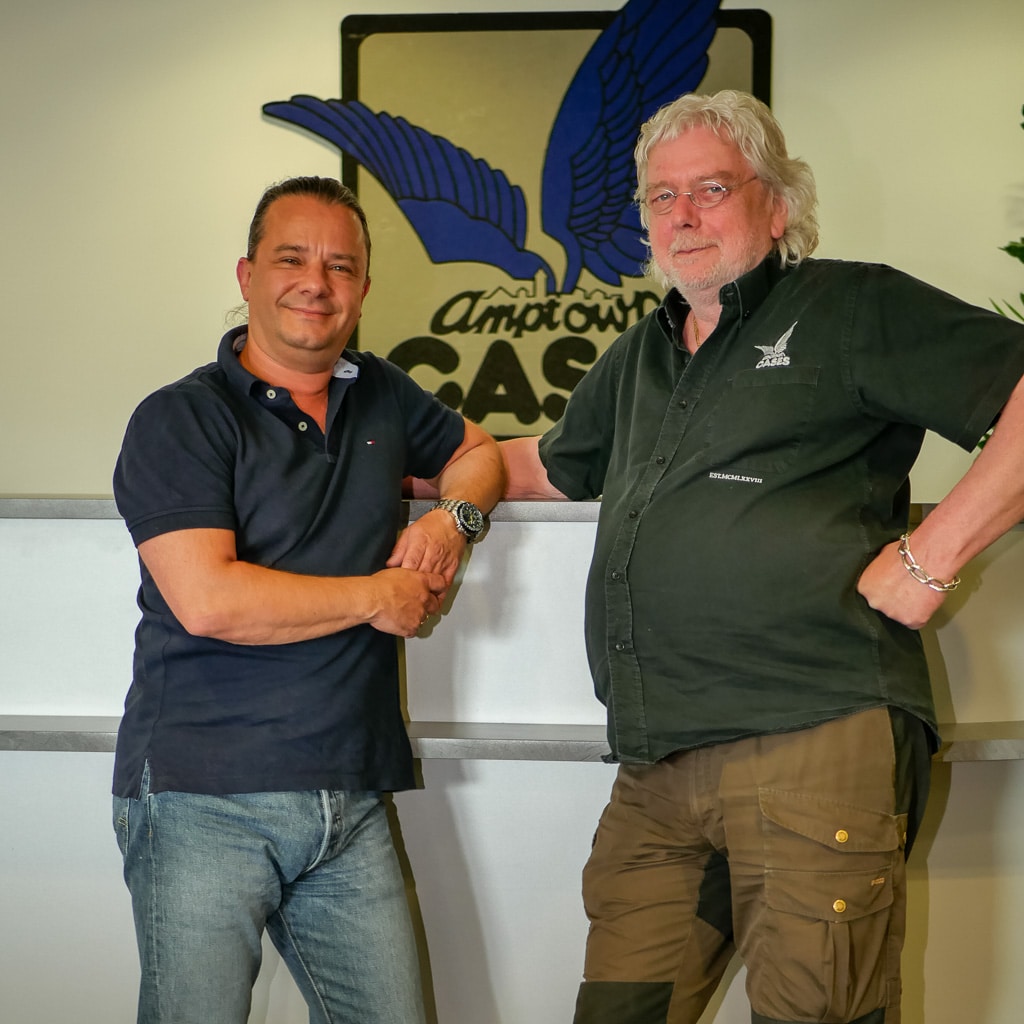 Peter Matthes hält sich heute wohlverdient dezent im Hintergrund: Mick Fischer und Oliver Wüpper tauschen den Staffelstab derweil in hanseatischer Gelassenheit und nicht in modischer, hektischer Betriebsamkeit. Erfahrung und Fortschritt werden gemeinsam austariert: Ihre Büros liegen jeweils am Ende des langen Flurs. Dazwischen arbeitet eine eingespielte Mannschaft an Rechnern und Telefonen. In den weiten Werkshallen im Erdgeschoß gehen 50 Beschäftigte dem Bau von Cases nach. Handarbeit und industrielle Verfahrensweisen gehen im wahrsten Sinne des Wortes Hand in Hand. Während der Stoßzeiten kommen zusätzliche Kräfte hinzu. Der größte Teil der Belegschaft ist schon viele Jahre bei Amptown Cases. Spitzenreiter ist ein Mitarbeiter, der seit Mitte der 80iger an Bord ist und die meisten Umzüge der Betriebsstätten miterlebt haben dürfte.