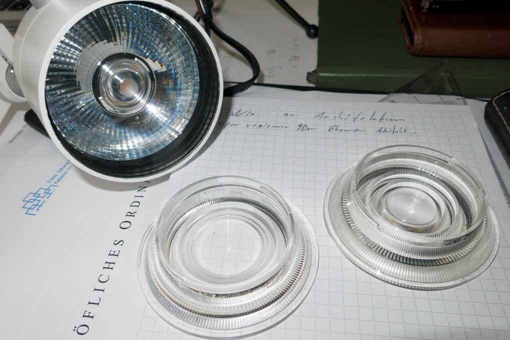 Nicht nur der Lichtkegel auch das Diffusfeld um den Kegel soll mit Vorsätzen definiert werden – einer Mischung aus Kollimatoren, Fresnellinse und Brechungsfeldern (Bild: Herbert Bernstädt)