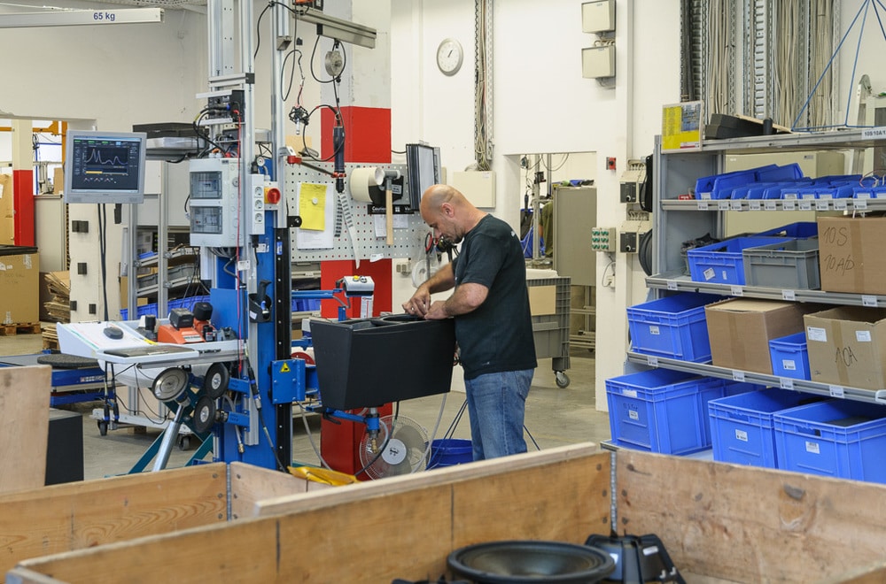 Typische Produktionsstation für d&b-Lautsprecher (Bild: Detlef Hoepfner)