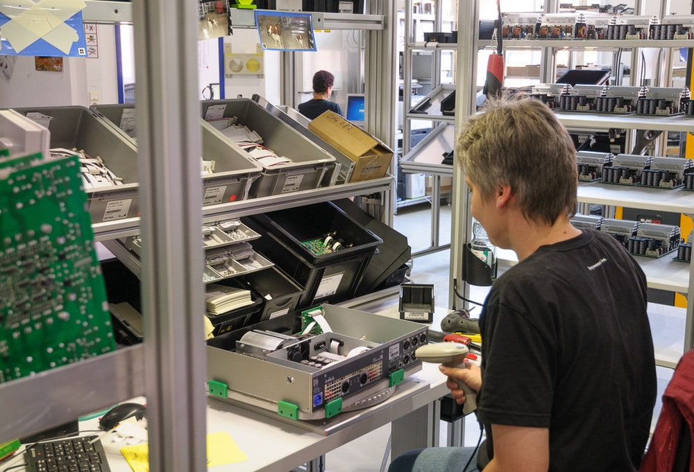 d&b Verstärkerfertigung: demnächst mit weiterem Modell (Bild: Detlef Hoepfner)