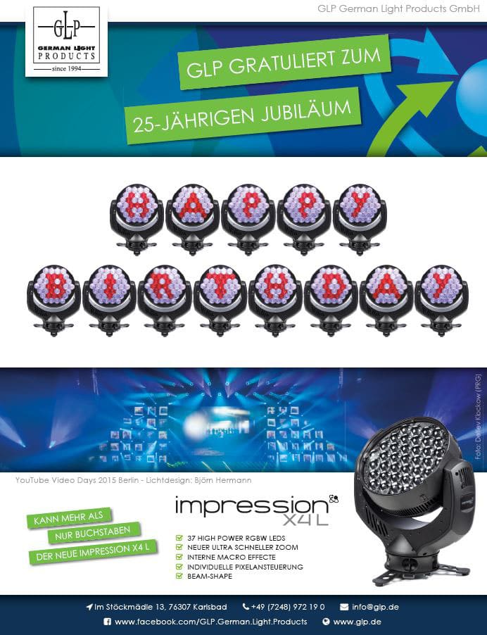 GLP gratuliert mit seiner Anzeige PRODUCTION PARTNER zum Jubiläum. (Bild: GLP)