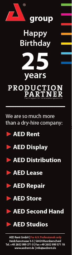 Eingeflochten in eine Anzeige gratuliert AED zu 25 Jahren PRODUCTION PARTNER. (Bild: AED)