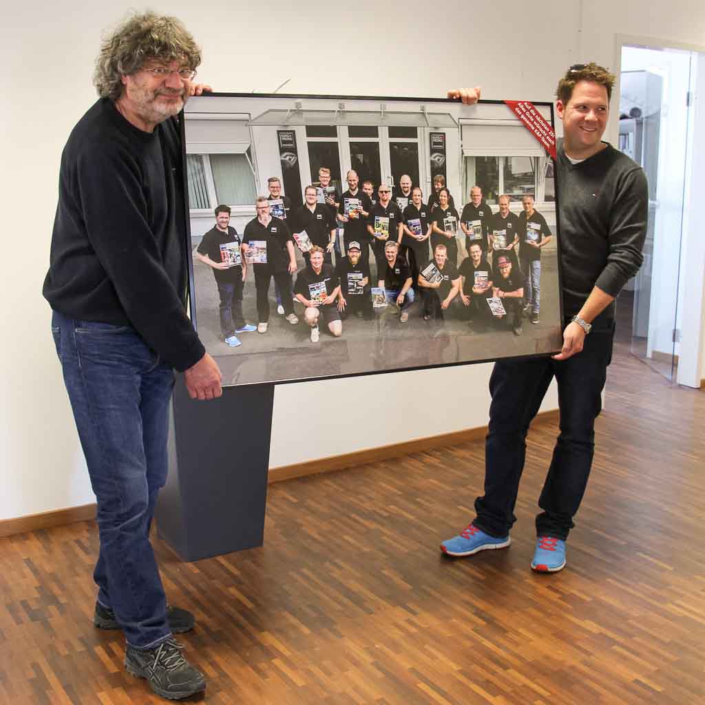 Was für eine Überraschung! Ausgestattet mit einem Querschnitt durch unsere Magazine gratulierte Lars Heinrich im Namen des gesamten Kling & Freitag-Teams Dr. Walter Wehrhan zu 25 Jahren PRODUCTION PARTNER.