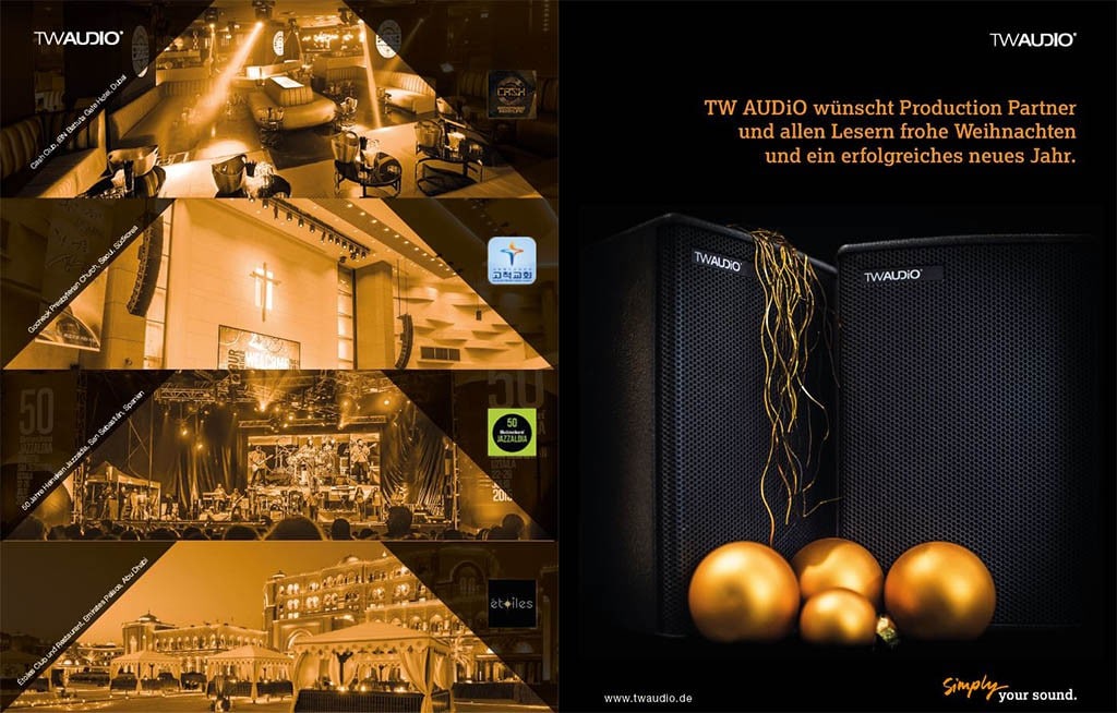 Mit einer weihnachtlichen Doppelseite beglückwünschte uns TW AUDiO – vielen Dank an unseren langjährigen Partner! #25YEARSPP
