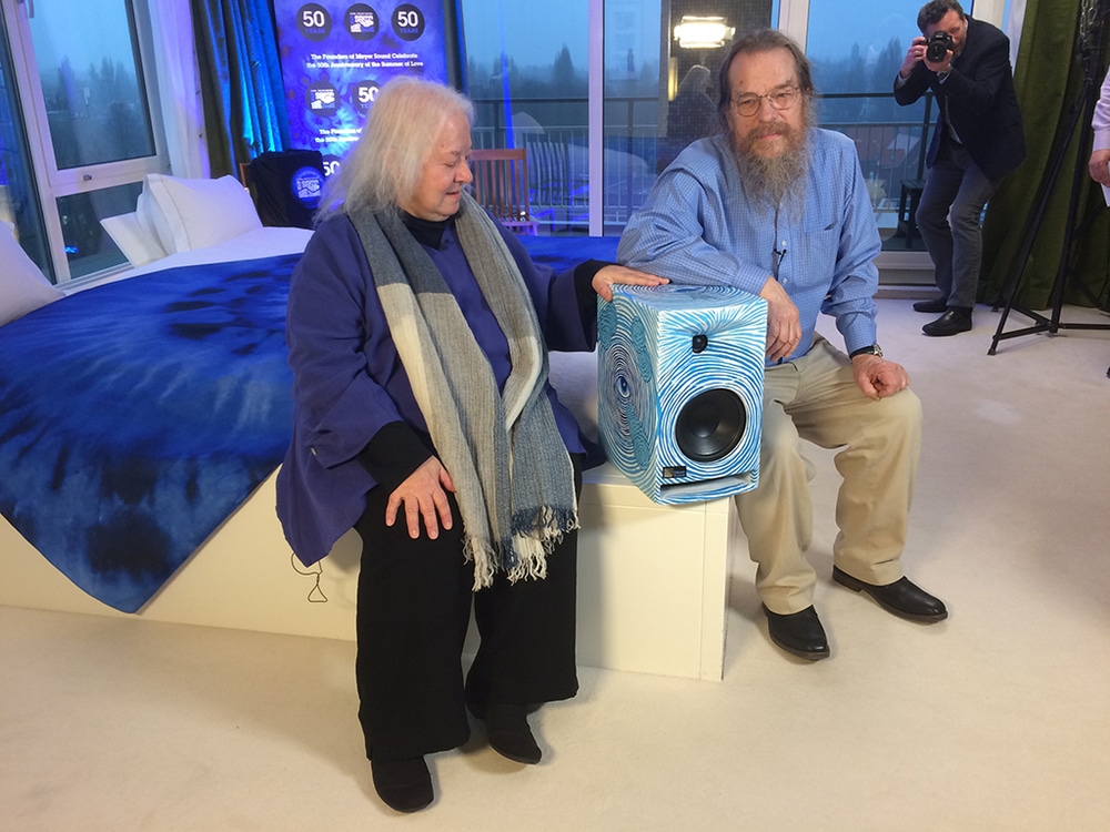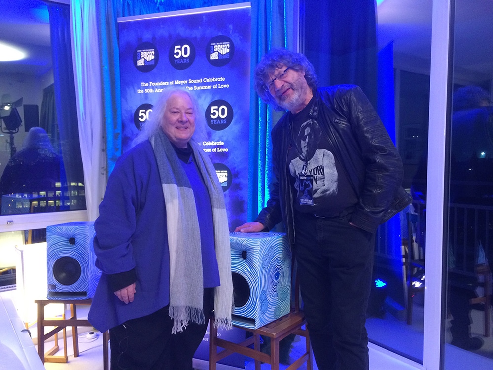 Zu den eingeladenen Ehrengästen gehörte auch PRODUCTION PARTNER-Chefredakteur Dr. Walter Wehrhan, der stilgerecht mit Lederjacke und John Lennon-T-Shirt (Motiv: John Lennon NYC) auf diesem Presse-Event erschien. Thema der Performance war: John und Helen Meyer huldigten 50 Jahre “Summer of Love”, dem Jahr, in dem John und Helen aktiv in die Entwicklung wirkungsvoller PA-Systeme für Rock-Bands einstiegen. Entsprechend dem Motto “50 Jahre Summer of Love” wurde aktuell auch die Website von Meyer Sound gestaltet. In der Honeymoon-Suite präsentierten die Meyers auch eine von kalifornischen Künstlern gestaltete Sonderedition des Studio-Monitors Amie.