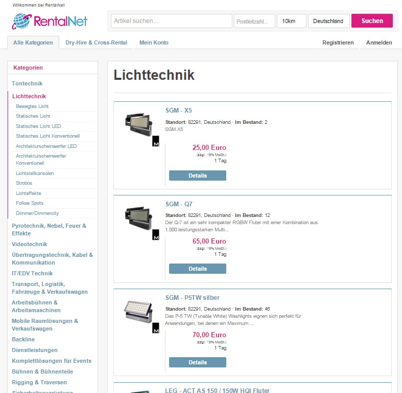 Die Idee ist durch den Arbeitsalltag entstanden: Ich leite seit 13 Jahren ein Unternehmen in der Veranstaltungstechnik. Folglich beschäftige ich mich täglich mit dem An- und Vermieten von Ausrüstung und Ressourcen, mit Logistik und – ganz wichtig – Marketing für mein Unternehmen. Das Thema Marketing ist in unserer Branche nicht ganz einfach und dazu noch ein beachtlicher Kostenfaktor (je nachdem wie man aufgestellt sein möchte). Ich komme des Öfteren in die Situation, Ausrüstung anmieten zu müssen – darüber hinaus auch besondere wie Aggregate oder Möbel. Natürlich ist auch immer eigene Ausrüstung vorhanden, bei der ich die Auslastung gern erhöhen würde. Dann stellt man sich die Frage: Wen gibt es eigentlich noch? Wie kann ich Unternehmen XY auf mich aufmerksam machen und diesem mitteilen, dass ich gute und gepflegte Ausrüstung habe? Und schon sind wir mitten im Thema Marketing angekommen. Ich war bis vor kurzem selbst Kunde bei einer kommerziellen Plattform. Die hat aber nie etwas für mich gemacht – kein Marketing an den passenden Stellen. Dazu kommt, dass man u. a. umgeben ist von Sportbooten oder auch Presslufthämmern, die man dort ebenfalls mieten kann. Irgendwie fühlte ich mich dort nicht richtig aufgehoben. Dann habe ich mich intensiv mit weiteren Plattformen auseinandergesetzt. Mit den kommerziellen sowie mit den verschiedenen Herstellernetzwerken. Nichts davon hat meinen Bedarf und meine Anforderungen erfüllt. Die meisten kennen vermutlich die bekannten Plattformen und wissen auch warum sie nicht gut sind oder gar nicht funktionieren. Nach vielem Hin- und Herüberlegen habe ich mir dann gesagt: „Okay, ich mache es selbst.“ Wobei „ich selbst“ inzwischen aber nicht mehr zutrifft. Wir sind mittlerweile sieben Leute, die jeden Tag daran arbeiten, ein gutes Werkzeug zu bieten.