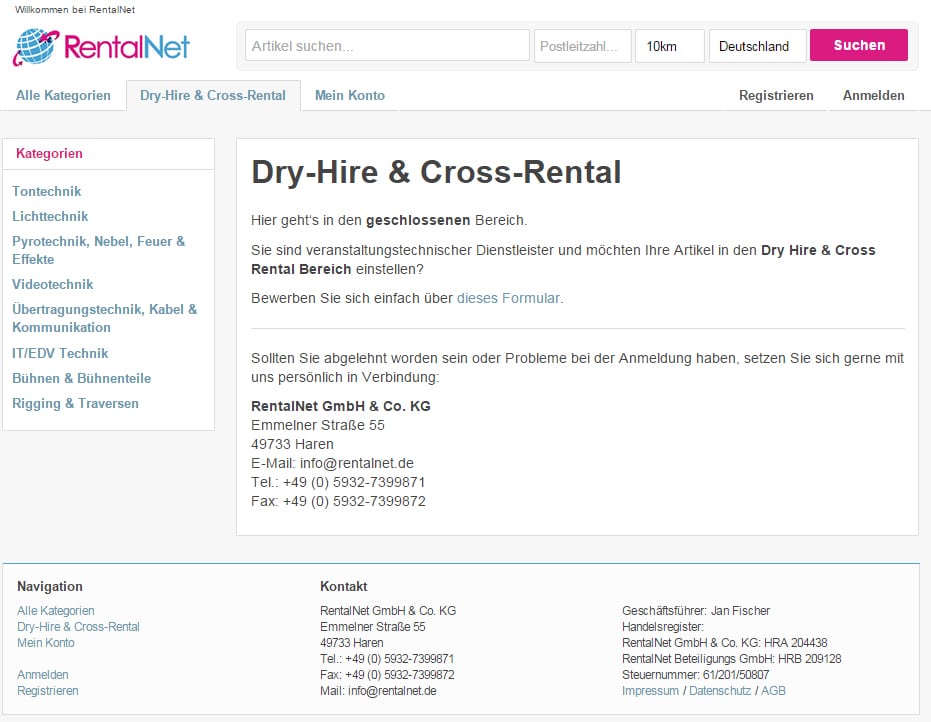 Wo ich in der Frage gerade „rentalnet.de“ höre … Das Portal wird auch für Österreich und die Schweiz angeboten. Was wir da anders machen: Alle Länder laufen über einen Server. Folglich ist es damit einfach, auch Ausrüstung im Ausland zu bekommen. Gerade für Unternehmen, die auch im Ausland tätig sind, kann das interessant werden. Denn es kommt immer mal vor, dass man etwas vergisst oder, dass auf der Baustelle plötzlich irgendwas defekt ist. Dann muss schnell eine Lösung gefunden werden.