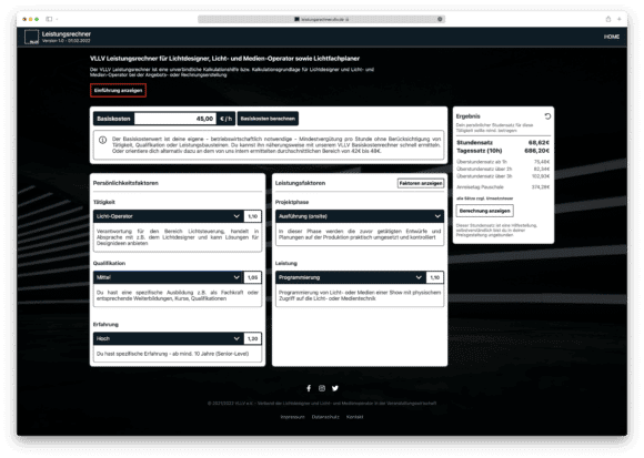 Im Februar 2022 veröffentlichte der VLLV e.V. seinen Leistungsrechner. Das Ziel des kostenlosen Online-Tools: eine faire, nachvollziehbare und leistungsorientierte Angebotserstellung auf Basis einer unternehmerisch nachhaltigen Kalkulation.