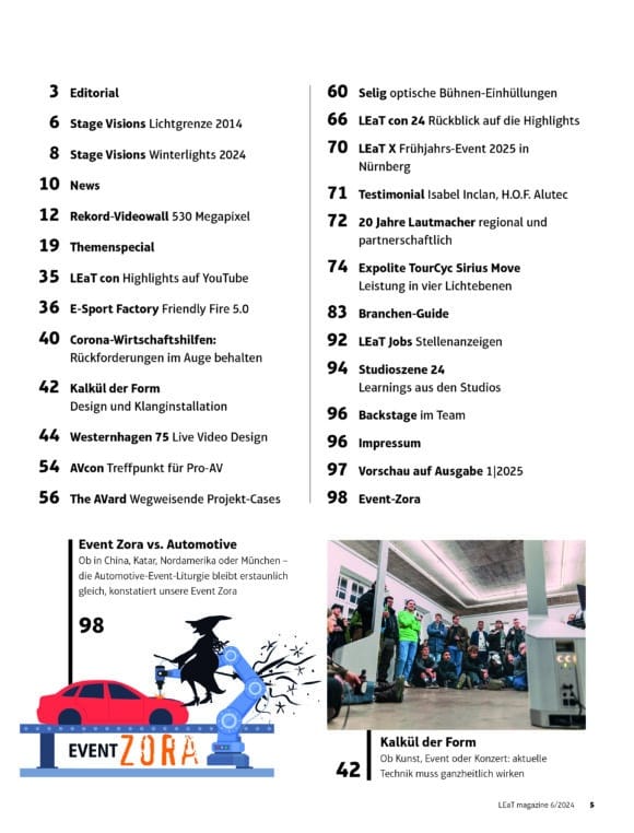 Test JBL VTX A6 +++ Automotive Event-Rituale +++ E-Sport Factory +++ 530 Megapixel Link Experience +++ Test Expolite Tourcyc Sirius Move +++ Corona-Hilfen: Rückforderungen?12,90 €