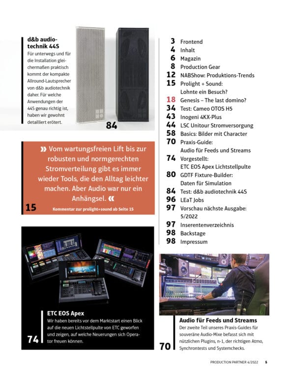 d&b 44S | OTOS H5 | ETC-Konsole EOS Apex | stabiles Audio für Streams | LCS Unitour | GDTF Fixture-Builder | Produktions-Trends NABShow5,80 €