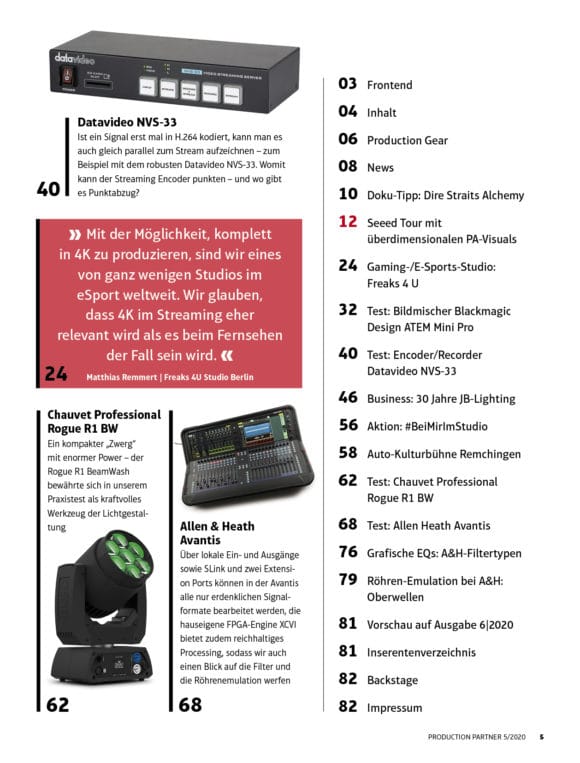 eSports/Gaming: Freaks 4U +++ BMD ATEM Mini Pro +++ Datavideo NVS-33 +++ 30 Jahre JB-Lighting Chauvet Professional Rogue R1 BW +++ Auto-Kulturbühne Remchingen +++ Allen & Heath Avantis5,80 €