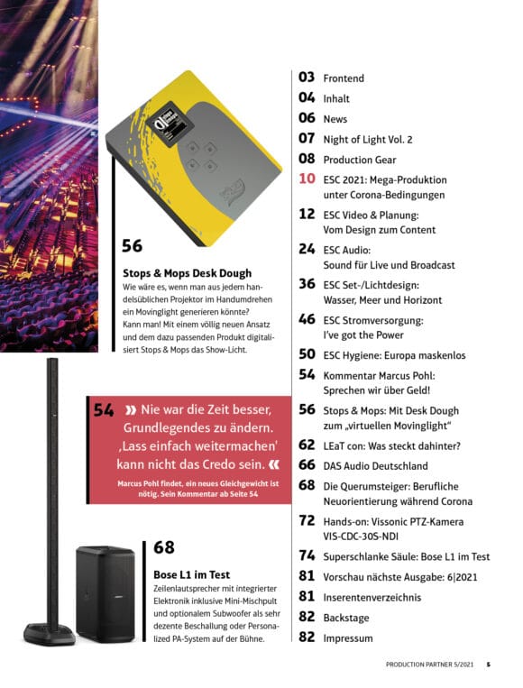 Bose L1 | Nullleiter-Monitoring | LEaT con 2021 | Vissonic PTZ-Kamera | Sprechen wir über Geld! | Stops & Mops Desk Dough | Job-Querumsteiger5,80 €