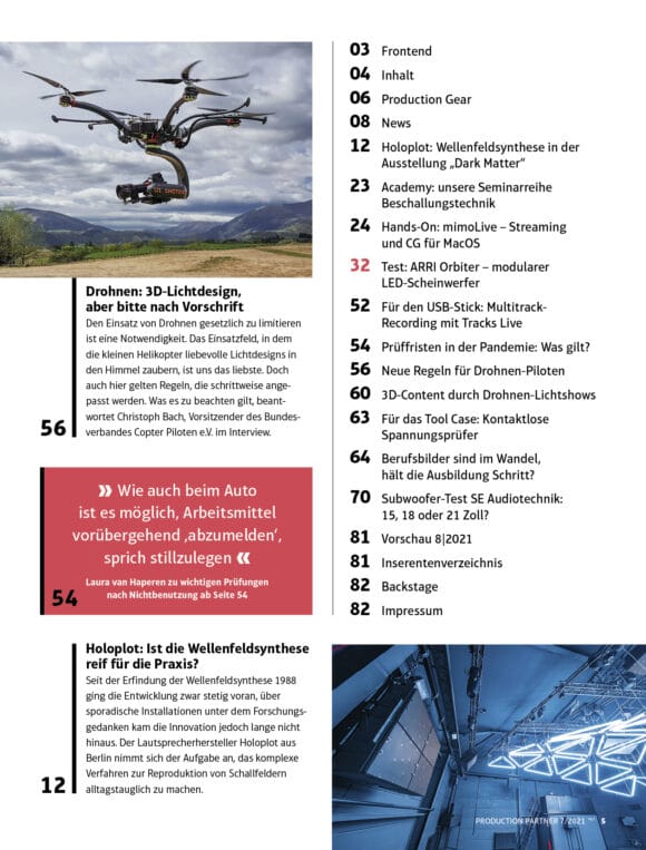 Holoplot X1 in Dark Matter | mimoLive | Prüffristen in der Pandemie | Neue Regeln für Drohnen | Ausbildung im Wandel | SE-Subwoofer: 15", 18", 21"5,80 €