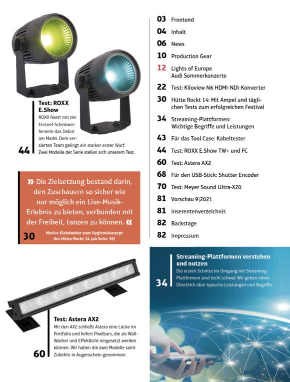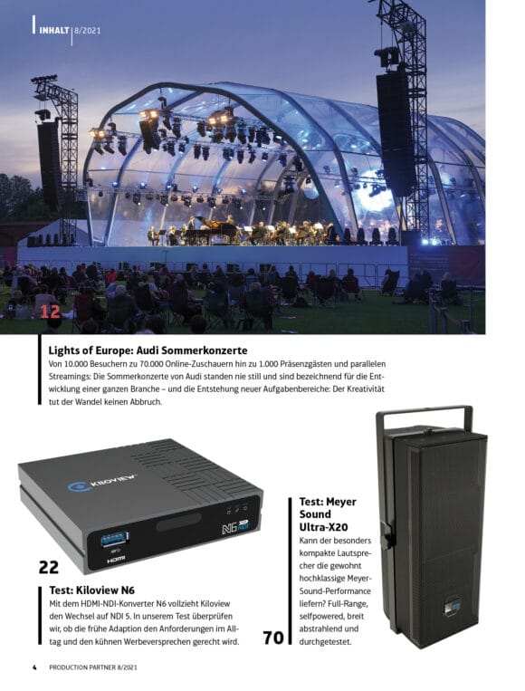 NDI-Konverter: Kiloview N6 | wetterfester Scheinwerfer ROXX E.Show | Hütte Rockt Festival | LED-Bar Astera AX2 | Meyer Sound X20 | LEaT con X Programm5,80 €