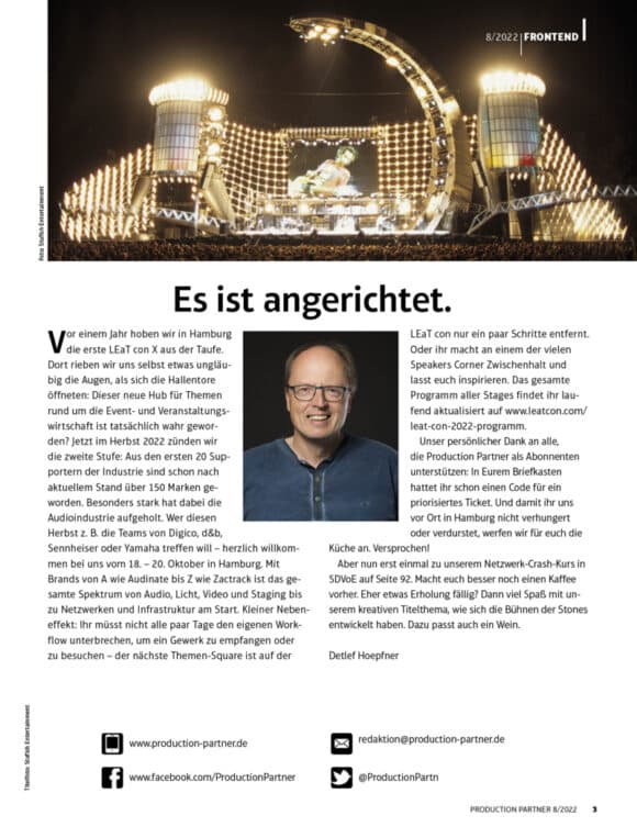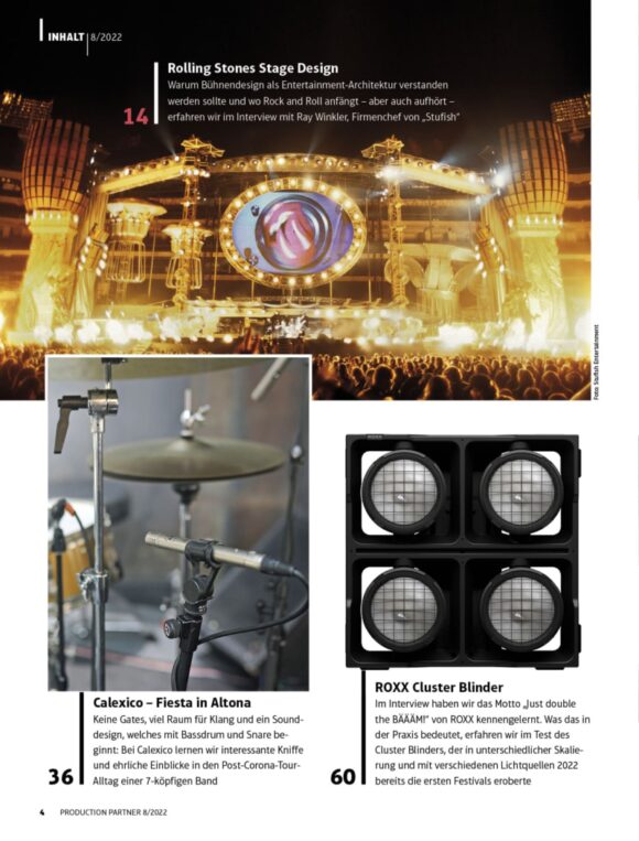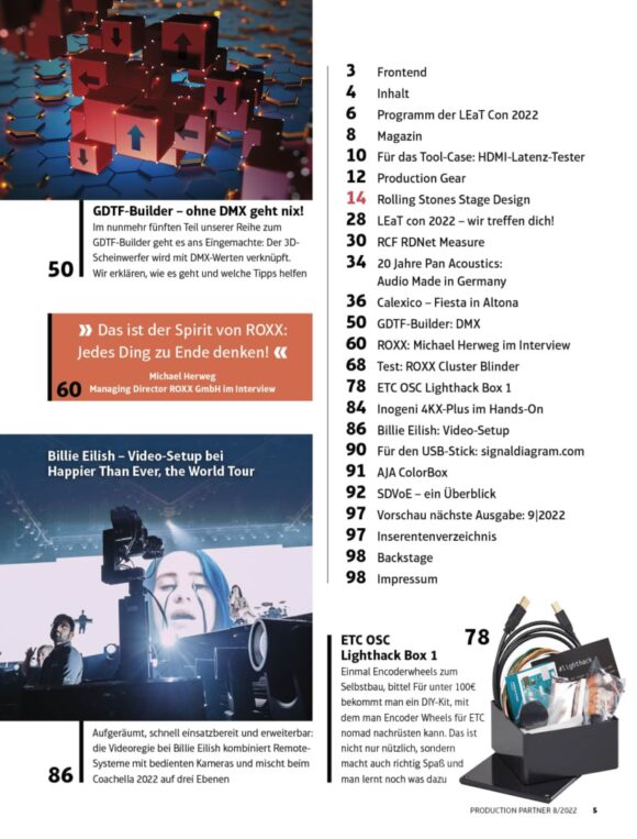 Ist das noch Rock’n’Roll? Die Bühnengeschichte der Rolling Stones | Calexico | GDTF-Builder: DMX | ROXX Cluster Blinder | ETC Lighthack Box | Billie Eilish | LEaT con Programm | SDVoE-Überblick | RCF RDNet Measure5,80 €