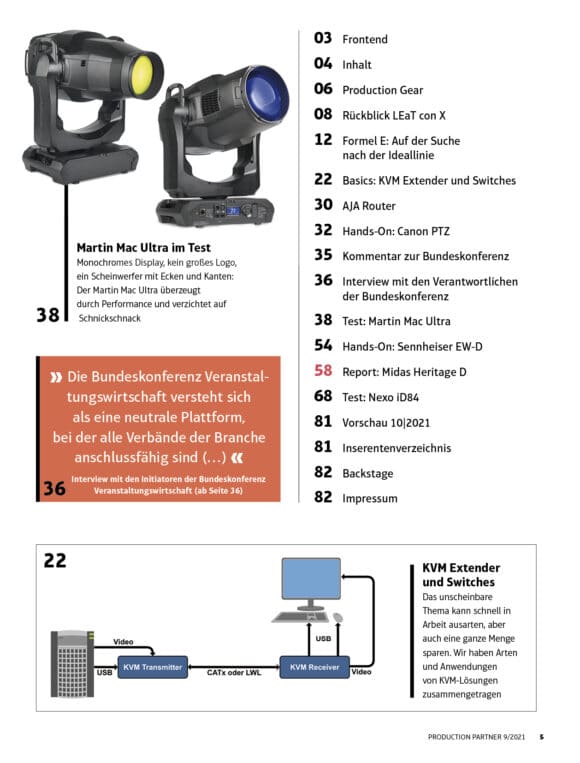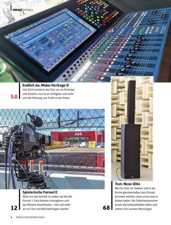 Formel E | LEaT con X | KVM-Equipment | Martin Mac Ultra | Canon PTZ-Kameras | Nexo iD84 | Sennheiser EW-D | Bundeskonferenz | Midas Heritage D5,80 €