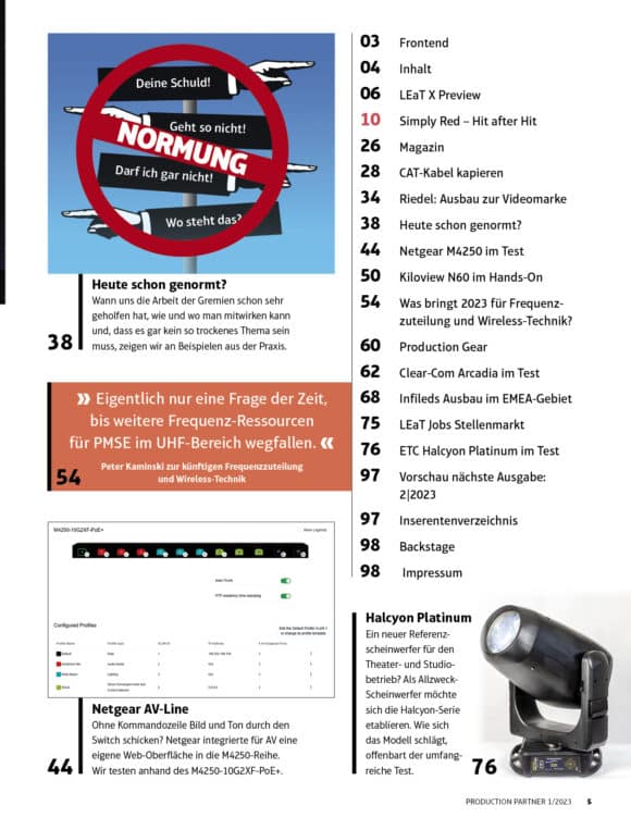LEaT X | Simply Red | Clear-Com Arcadia | Netgear AV-Line | Praxiswissen: CAT-Kabel | Kiloview N60 | Wie Normung konkret hilft6,60 €