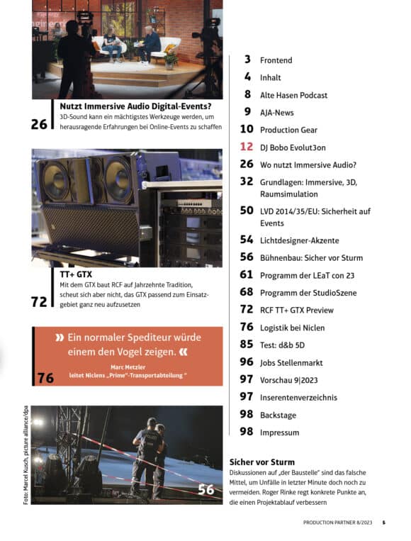 LED-Wall bei Sturm | StudioSzene 2023 | RCF TT+ GTX | L-ISA Setup | Logistik-Trucking | EU Low Voltage Directive | d&b 5D6,60 €