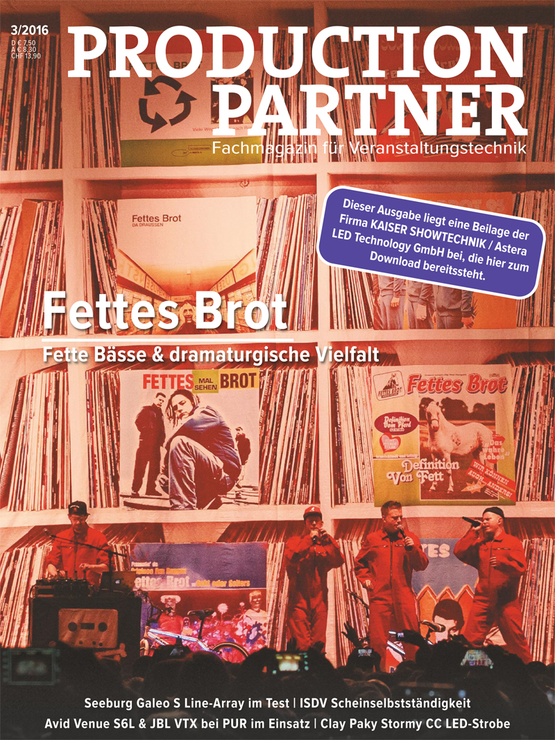 Fettes Brot, fette Bässe & dramaturgische Vielfalt +++ Test: Seeburg Galeo S Line-Array +++ ISE 2016: Neuheiten & Trends +++ PUR +++ Basel Tattoo +++5,50 €