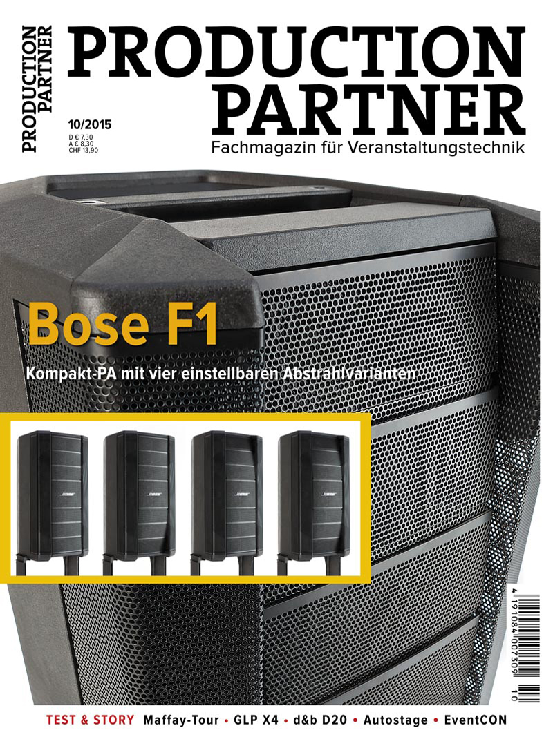 Bose F1 +++ Kompakt-PA mit vier einstellbaren Abstrahlvarianten +++ Test & Story Maffay Tour +++ GLP X4 +++ d&b D20 +++ Autostage +++ EventCON5,50 €