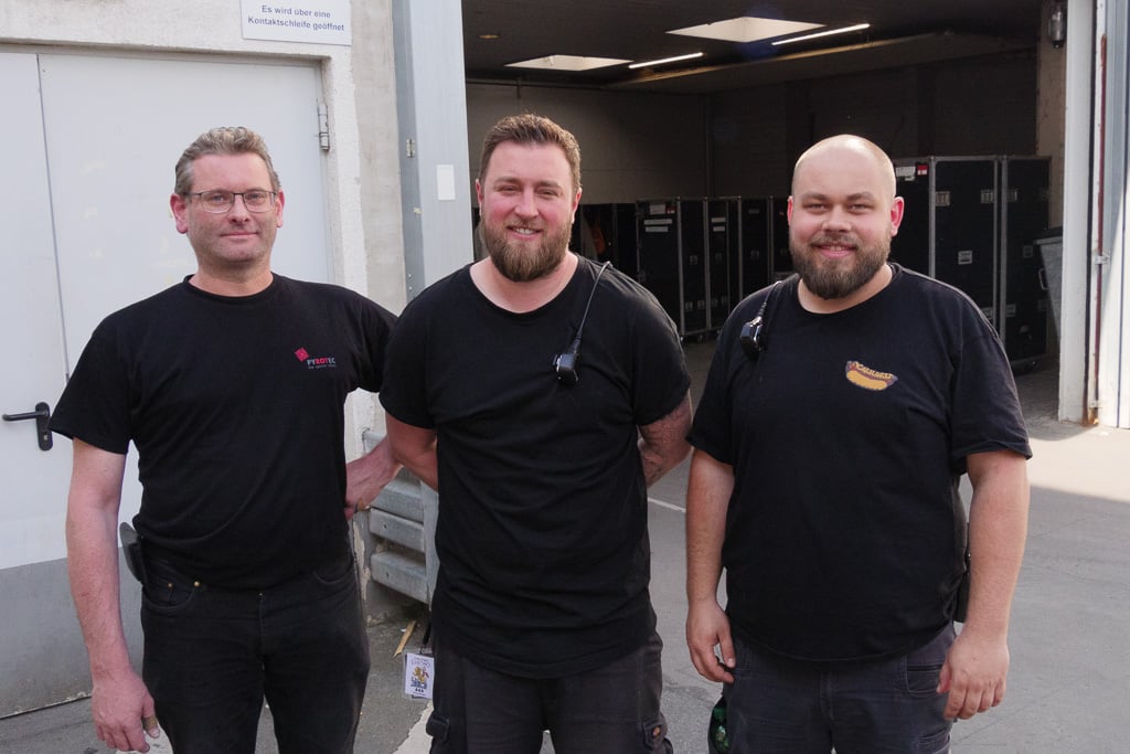 Toncrew Andre Mousson (FOH), Benjamin Mengler (Monitor) und Jannik Kieper (PA-Systemtechniker Media Resource Group) (v.l.n.r.) (Bild: Harald Heckendorf)
