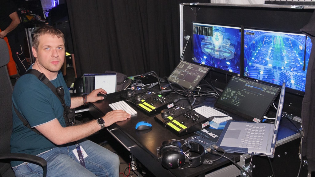 Niklas Schmitt, der das Follow Me System während der Tournee im Auftrag der Media Resource Group betreute, ist Inhaber der virtual & live Show GmbH und ebenso erfahrener Licht-Operator. Bereits seit einigen Jahren beschäftigt er sich mit der Optimierung der Möglichkeiten von Follow-Me-Systemen. Seit etwa einem Jahr besitzt er ein eigenes System. Sein leidenschaftliches Engagement führte zu einem intensiven und konstruktiven Austausch zwischen den Entwicklern und dem deutschen Vertriebspartner LMP. Mittlerweile gilt er als ausgewiesener Experte und freute sich, eines der ersten Track-it-Systeme bedienen zu dürfen.