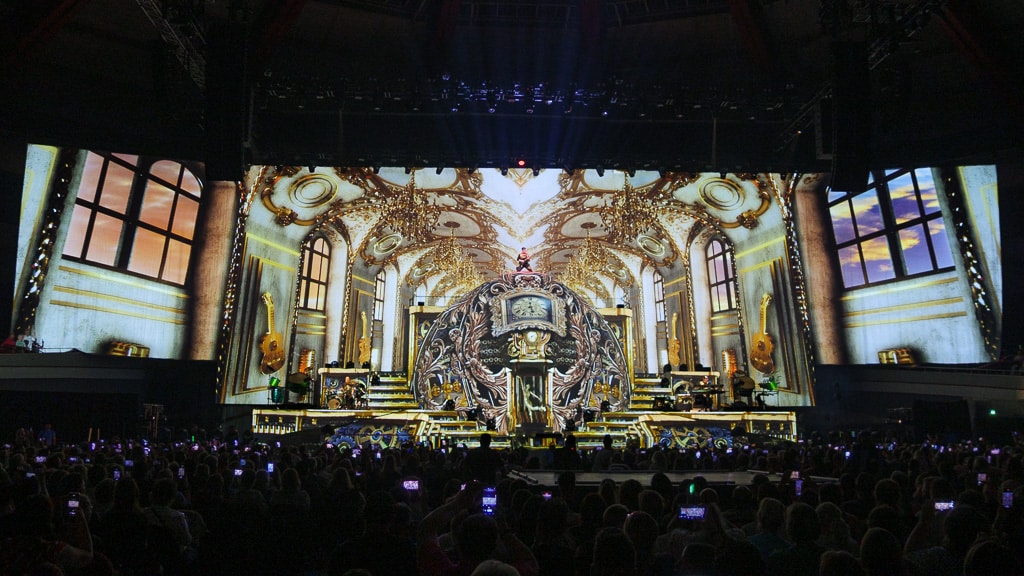 Schon die Kulisse der Show beeindruckte. Selten durfte ein Künstler aus der DACH-Region einen derartigen technischen Aufwand für eine Arena-Tour betrieben haben, der den Vergleich mit internationalen Produktionen nicht zu scheuen brauchte. Zudem wurde die Show mit unzähligen liebevollen Details zu einem Gesamtkunstwerk verwoben.
