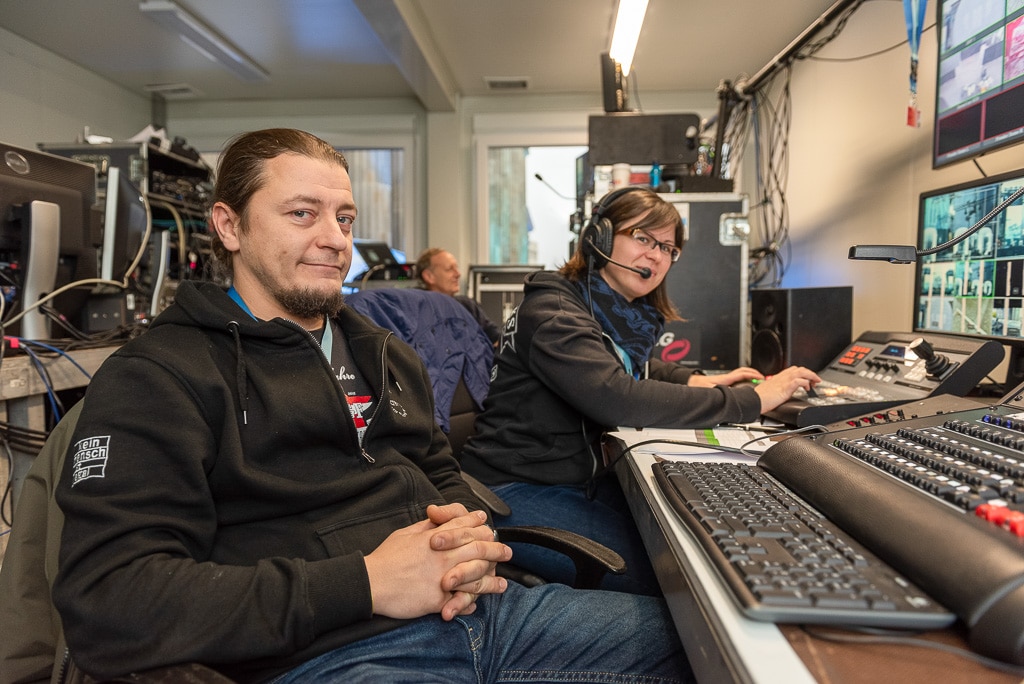 VideoMarf Kretschmer an der E2 und Mia Rufflet am Bildmischer für das Show-eigene Live-Bild (Bild: Lukas J. Herbers)