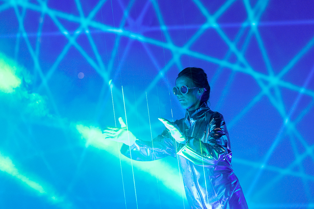 Die „Laser Harfe“ leitete zusammen mit der SR & Company vom offiziellen Programm in die Aftershow Party über – mit Westbam und dem DJane Duo aus Kikelomo und S Ruston von der No Shade Clubreihe und des DJ Trainingprogramms für weibliche, trans und nicht-binäre DJs in Berlin (Bild: Lukas J. Herbers)