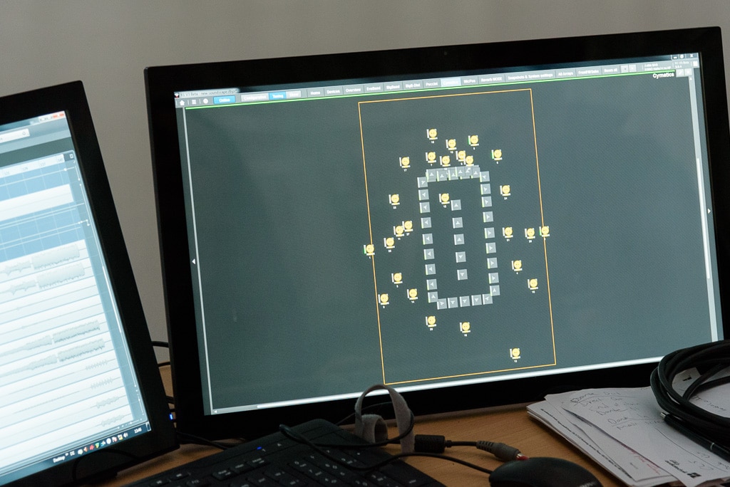 Leichter gesagt, als getan? In welchen begleitenden Disziplinen – von Mikrofonierung über Messtechnik bis zu Mischpultworkflows – sollte man sich denn heute besonders fit halten, um in diesen immersiven Projekten erfolgreich mitarbeiten zu können? Ralf Zuleeg sieht hier einige der Themen ganz vorne, die auch d&b schon lange im Fokus hat: „Netzwerktechnik, Mehrkanaltransporttechniken, aber auch Steuerprotokolle wie OCA, OSC oder AES70. Die meiste Zeit beim Aufbau und bei der Inbetriebnahme verplempert man eigentlich mit der Suche nach den richtigen IP-Adressen. Da ist dann die Verstärkersteuerung auf fixe IP-Adressen eingestellt, das Audioprotokoll auf Link Local usw. Da muss man schon ziemlich auf Draht sein, um das zu beherrschen. Wer messen will, soll messen … möglichst so, dass alle Lautsprecher gleich klingen und zu vernünftigen Zeiten ankommen. Da hilft aber bisweilen saubere Vorplanung mehr als der EQ. Man muss sich über das Lautsprechersetup und die einzelnen Funktionsgruppen mehr Gedanken machen, denn neben der Abdeckung muss auch eine ausreichende Überlappung der Lautsprecher in den Gruppen gewährleistet sein. Beim Mikrofonieren ändert sich zunächst gar nichts, man will ja die Instrumente wie schon vorher möglichst original oder aber mit einem bestimmten Klang abgenommen haben. Einzig der Bus geht verloren. Idealerweise mischt man ja nichts vor, sondern man mischt über den Algorithmus der Maschine und der Luft. D. h. also: Mastering muss schon vorher geschehen … am besten im Kopf. Es hilft, sich mal wieder ein akustisches Konzert anzuhören, mit offenen Ohren durch die Welt zu laufen um sein Bild, wie es klingen soll und kann, zu justieren. Die Stimme muss halt nicht mehr mit ‚Gewalt’ nach vorne gemischt werden, die hat ihren Platz im Ensemble und das ist dann auch gut so.“
