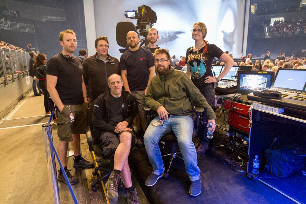 Als schließlich die Weichen zur Tour gestellt waren, wurden die Tourneeproben im Wembley Stadion organisiert – nicht, weil man ein protziges Zeichen setzen wollte, sondern weil andere Locations inzwischen ausgebucht waren. In einer so großartigen Örtlichkeit zu proben, erwies sich im Nachhinein als sehr vorteilhaft. Zumal dadurch nicht nur die visuellen Aspekte der Show, sondern vor allem das einzigartige Sound-Design optimal erarbeitet und erprobt werden konnten. Dabei kam nicht nur Personal (wie etwa Björn Börnecke als Systemtechniker) aus Deutschland, auch German Engineering gab es: Sennheiser und Beyerdynamic waren im Audiobereich präsent und Black Box Music lieferte „Holz“ und das nötige Zubehör. Gerriets steuerte gewohnt professionelle und ausgesuchte Materialien für die Videoprojektion bei. Die meisten Gewerke stammen aber erwartungsgemäß aus England. Für die Video-Projektionstechnik war Creative Technology CT verantwortlich, die bereits mit Production Manager Richard Young u. a. Pink und Radiohead betreute. Auf der A-Stage bildete eine 22,5 × 8 m LED-Wand den imposanten Backdrop. Durch Verwendung von Carbon-Bauteilen konnte das Gewicht der Wand auf 11 kg pro m2 reduziert werden. Die B-Stage war mit vier ausrollbaren Gaze-Leinwänden bestückt und von vier 20K Panasonic-Projektoren, die im Portrait- Modus arbeiteten, bespielt. Auf jede Seite konnte ein Livebild projiziert werden. Videoregisseur Matt Askem standen insgesamt sechs Kameras (davon eine Tower Cam) zur Verfügung. Über Photon Medienserver wurden die Inhalte auf das jeweils benötigte Format angepasst. Fingerspitzengefühl ist bei der Anpassung der Projektoren wichtig. Hier galt es, die bestmögliche Position zu finden – aber den PA Hangs den Vorzug, um die optimale Position zu überlassen.