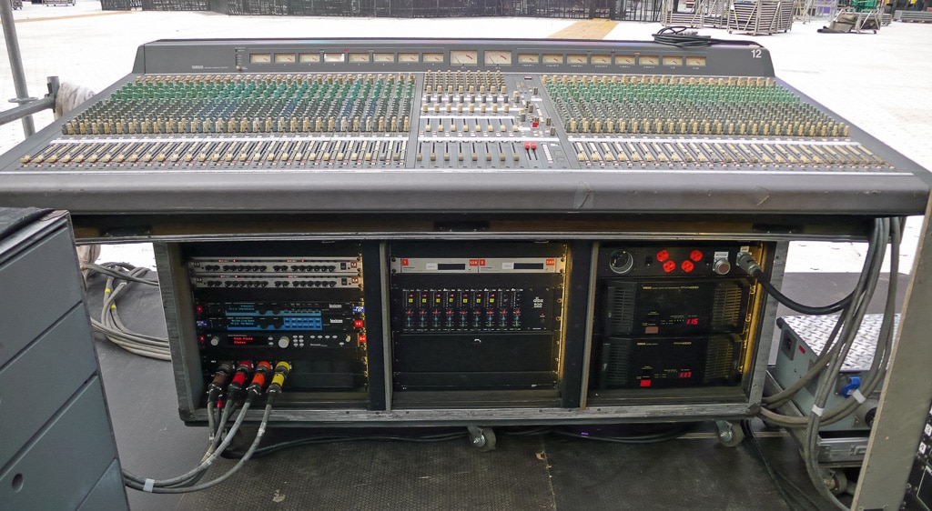Als Pult dient ihm seit Jahren eine analoge Yamaha PM4000-Konsole, er verzichtet nach Möglichkeit auf digitale Boards, wenn er die Wahl hat. Das sei keine Angst vor Technik, sondern eine „Sicherheitsmaßnahme“, um den reibungslosen Ablauf der Produktion zu stützen: „Ich habe digitale Konsolen zu oft ausfallen sehen. Bei einer analogen Konsole sind die Fehlerquellen überschaubar: Etwa das Netzteil – dafür habe ich Ersatz. Wenn ein Kanal nicht funktioniert, ist der Fehler auf das Modul beschränkt und ich kann es austauschen. Das geht bei einem digitalen Pult zwangsläufig nicht. Wenn das die Konsole entscheidet, ‚ich funktioniere heute nicht“, kannst du vermutlich nichts dagegen tun! An der Stelle will ich kein Equipment, das selbstständig denkt, sondern ein extrem ‚primitives‘ analoges Board, das nur etwas macht, wenn ich es dazu bewege. Die Show ist zu groß. Ich würde nicht zu den Rolling Stones gehen wollen und sagen: ‚Das war’s für heute, das Pult läuft nicht!‘, das darf nicht passieren.“ Er hat zusätzlich eine Ersatzkonsole im Gepäck. „Bei den Tour-Proben nutze ich in der ersten Woche die Hauptkonsole, danach eine Woche lang die Ersatzkonsole, damit dort alle Pegel richtig justiert sind. Wenn ich auf Tour wechseln muss, wird das Ergebnis sehr nah am ersten Pult sein.“