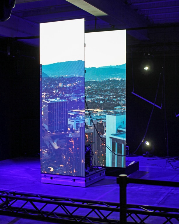 Wer bislang LED-Flächen bei Show-Projekten oder Installationen einsetzen wollte, war „ortsgebunden“: Screens wurden installiert, der Platz im Bühnenbild war fest vergeben. Werden LED-Wände nur kurz sichtbar und der Bühnenplatz danach anderweitig gebraucht, wird es bislang kompliziert: Weitere Logistik und andere Gewerke sind notwendig, um LED-Panels zu „mobilisieren”. Beispielsweise werden Schienen verlegt, um die Wände ins Bühnenbild ein- und auszufahren.