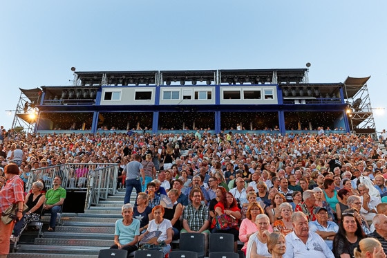 Die auf der kurzen Seite des Platzes aufgestellte Tribüne wurde mit gewinkelt nach oben weisenden Arrays versorgt. Zum Einsatz kamen insgesamt vier Stacks, welche an den Außenpositionen jeweils vier und für den Innenbereich je drei d&b Audiotechnik V8 zusammenfassten – mehr Units hätten sich mit Gedanken an eine Sichtbehinderung nicht stapeln lassen. In einer VIP-Lounge sorgten zehn zeitverzögert angetriebene d&b E0 für eine Auffrischung der Signale. Die Basswiedergabe übernahmen 14 unterhalb der Tribünen aufgestellte Kling & Freitag Access B5. Mit den Anwohnern gab es dem Vernehmen nach keine größeren Probleme bezüglich Sound bzw. Lautstärke – einem guten Verhältnis zur Nachbarschaft mag zuträglich sein, dass für die Anwohner Freitickets bei der Generalprobe verfügbar sind.