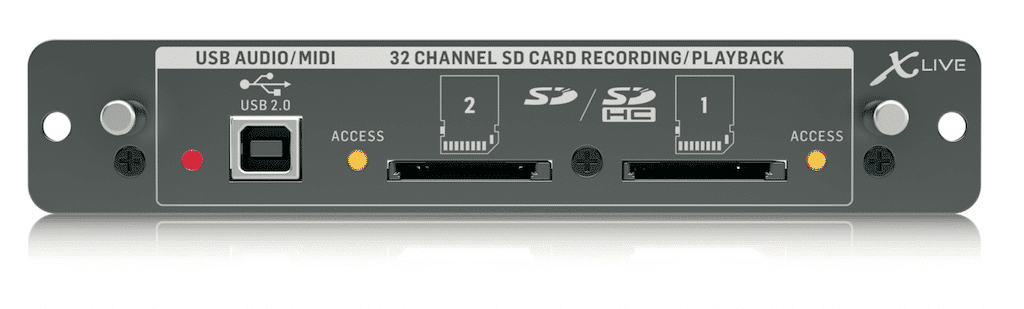 Ende 2017 überraschte Behringer dann erneut die User des X32: Eine neue Einstecckkarte namens X-LIVE – “Designed and engineered in Germany”, bei Willich betreibt Behringer nach wie vor ein aktives R&D – bietet 32 Kanäle Live Recording und/oder Playback auf SD/SDHC Karten plus ein USB Audio/MIDI Interface. Über drei Stunden 48 kHz/32-bit PCM Live-Recording von 32 Kanälen sind in einer Session möglich, gespeichert als unkomprimuerte WAV-Datei – und das eben ohne externen Laptop auf einer 64-GB-Karte. Ein USB 2.0 Audio/MIDI interface liefert ebenfalls 32 Kanäle bi-direktional für Studio- und Live-Recording. Die Nutzung der SD-Karten und des USB-Recordings/Playback soll unabhängig funktionieren, um beispielsweise Playbacks einzuspielen und gleichzeitig die Show zu recorden. Das Pult bleibt dabei völlig frei für den normalen Mix, das Routing erfolgt im Hintergrund und die Bedienung erfolgt über die X32-Oberfläche (dazu wird das Firmware-Update 3.08 nötig). Auch aus den Apps und der Bedienkonsole heraus soll es Zugriff auf Markern geben, ohne dass ein Laptop möglich ist, sie lassen sich setzen, editieren und in einem Präzisions-Modus mit Vorhörfunktion besonders genau definieren.
