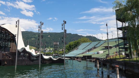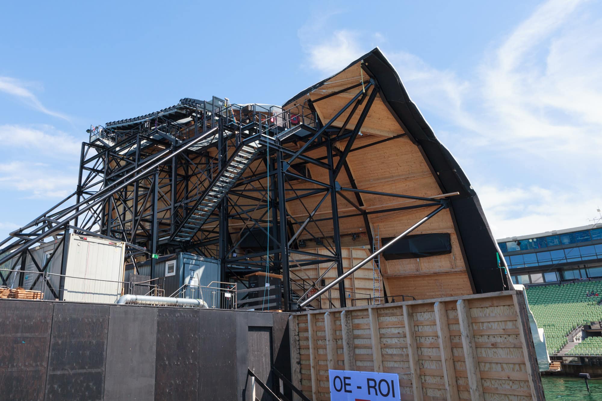 Wie dies tontechnisch gelingt, erklärte Clemens Wannemacher, Leiter der Tonabteilung der Bregenzer Festspiele, bei unserem Besuch der Seebühne.