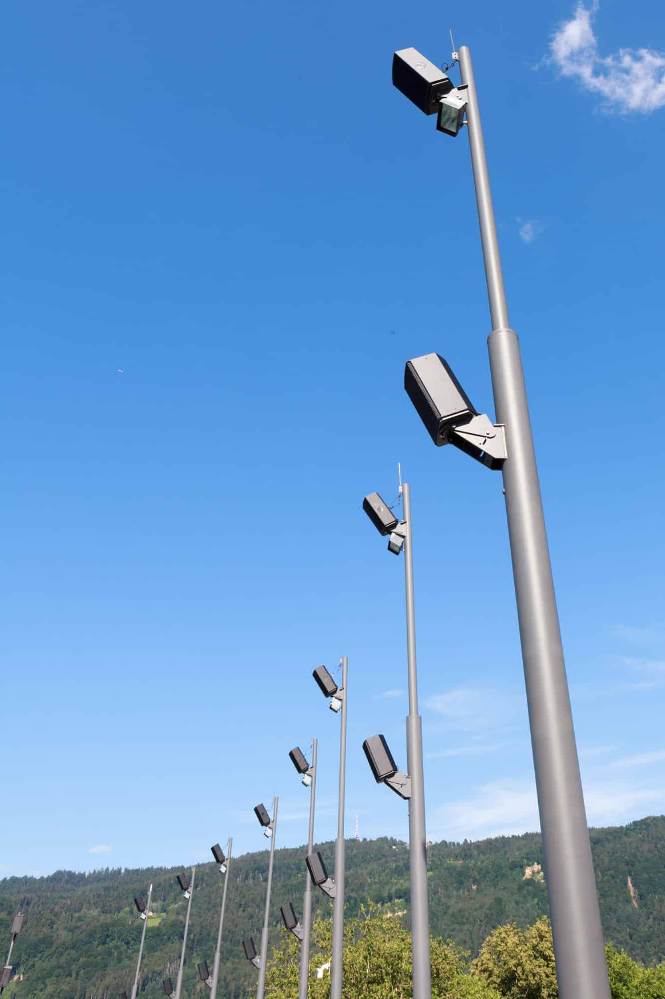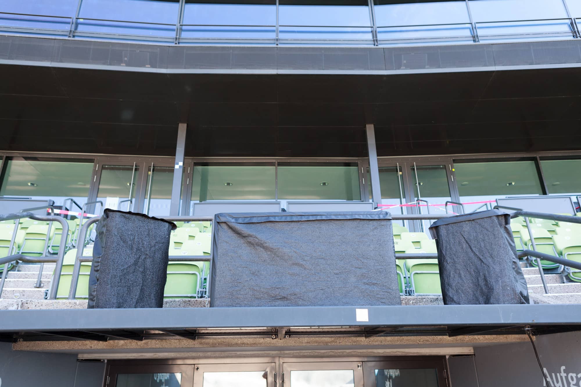 Hinterer Rand der Tribüne Lautsprecher tragen dazu bei, dass sich die Zuschauer wie in der Oper von der Musik umhüllt fühlen (Bild: Christiane Bangert)