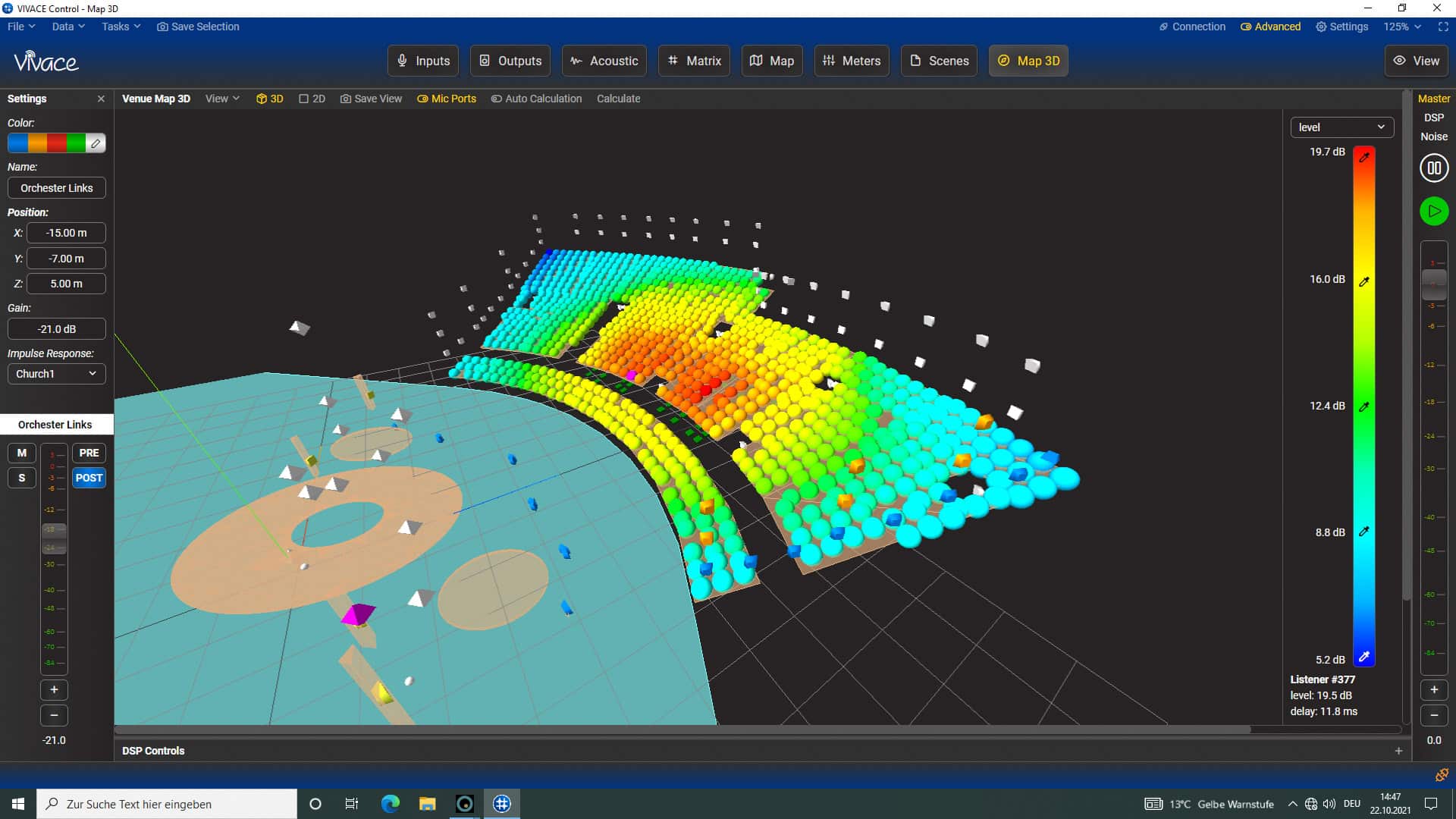 3D-Pegelverteilung auf der Tribüne, dargestellt auf der Vivace-Oberfläche (Bild: Christiane Bangert)