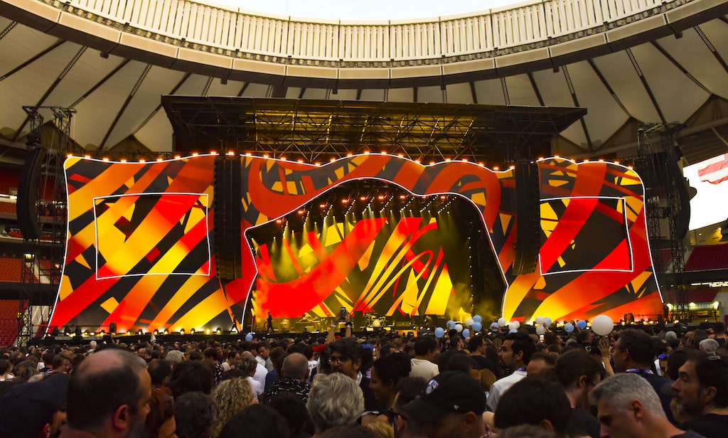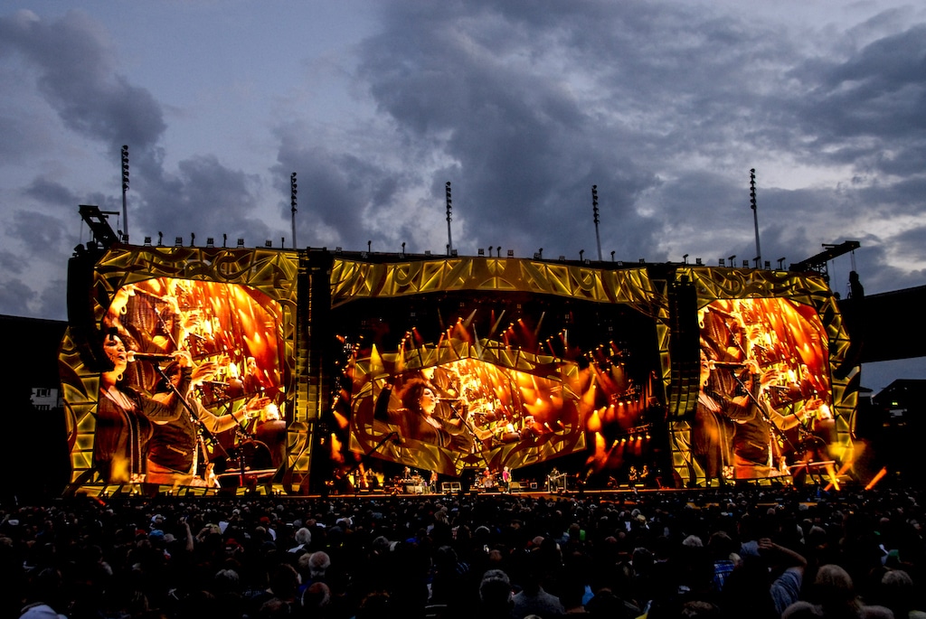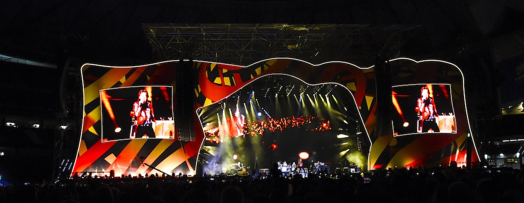 Winkler: Du brauchst zum einen eine Größenordnung, die das Publikum in einer Stadion-Umgebung wahrnimmt und erkennt. Die Bühnen sind traditionell zwischen 55 und 75 Meter breit – im Fall der „Sixty“-Tour 55 Meter. Dazu sind sie zwischen 20 und 30 Meter tief, und zwölf bis 15 Meter hoch. Und natürlich besteht der Hauptgrund, warum die Leute kommen, darin, dass sie die Musik hören und die visuelle Darstellung sehen möchten, die die Band mitbringt. Jede Show hat eine sorgfältig konstruierte Set-List, die das Narrativ der Band zum Publikum bringt.