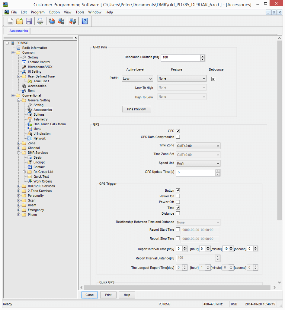 Frequenzen, Zonen und Kontakte. Dabei stellen auch größere Netzinfrastrukturen kein Problem dar: Es können bis zu 1.024 Kontakte in den Geräten definiert und mit einem Namen bezeichnet werden. In einem Netz können aber auch mehr als 1.024 User teilnehmen, diese werden dann nur an dem Gerät nicht mit einem Namen im Display angezeigt sondern mit einer numerischen Radio-ID, die in den Geräten eingetragen werden muss. Mit dem Code Plug für ein Netz lassen sich die einzelnen Geräte nun individualisieren oder man erstellt für bestimmte Arbeitsbereiche Sub-Code Plugs. Für kleinere Netze mit ein paar Dutzend Teilnehmern und ein Dutzend Frequenzen ist ein Code Plug mit etwas Erfahrung dank der CPS problemlos in einer halben Stunde erstellt.