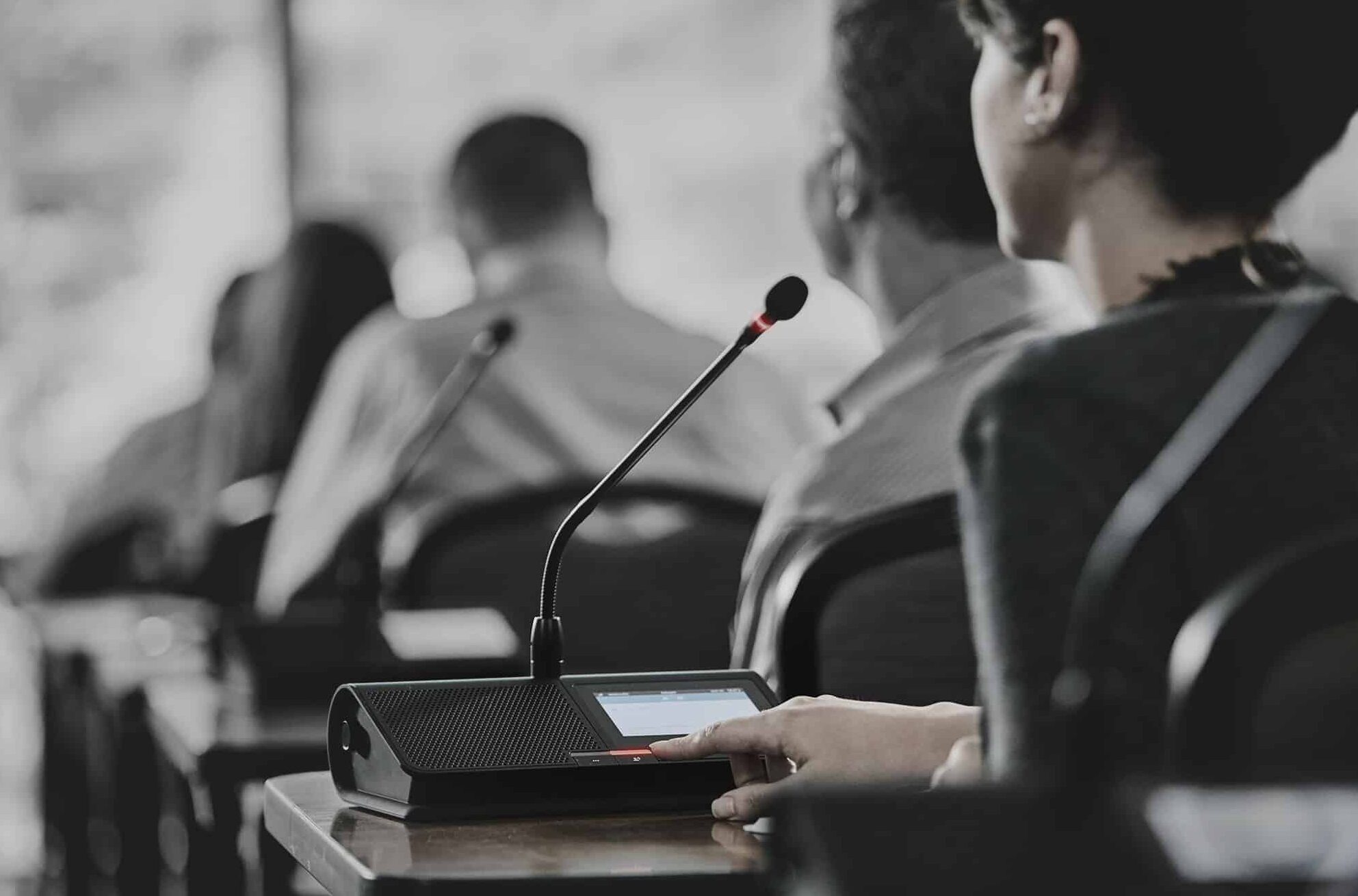 Im Bereich klassischer Konferenzen bietet sich das drahtlose System beispielsweise zum Einsatz bei wechselnder Sitzordnung an, oder auch in Gebäuden, die baulich keine Veränderungen zulassen. Während der Pandemie kam es etwa für die temporäre Nutzung in Räumen zum Einsatz – die Kreistagssitzung des Landkreises Bad Kissingen fand damit beispielsweise in einer Turnhalle statt, auch die Sitzung einer Luxemburger Gemeindeverwaltung wurde entsprechend in alternativen Locations abgehalten. Eichhofer: „Wenn ich wiederkehrende Sitzungen habe – etwa in einem Stadtparlament – kann ich die Sprecher auch mit NFC-Karten versorgen. Dort werden die Sprechernamen vermerkt. Ich kann die Karte direkt in die Sprechstelle schieben, und der Platz wird dem Sprecher zugewiesen werden. Damit entfallen beispielsweise Namensschilder.“