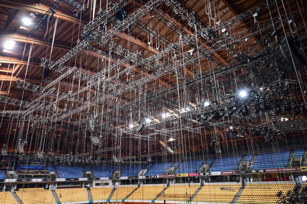 Dann wurden die Ausschreibungsdokumente für die einzelnen Gewerke wie Licht, Ton, Rigging, Generatoren, Pyrotechnik, Bühnenbau, Spezialkameras und was noch alles für die Show benötigt wurde, erstellt. Dabei wurden alle Gewerke nicht an einen Generaldienstleister sondern einzeln vergeben. So sollte die Produktion die Kontrolle über die einzelnen Bereiche behalten. „Ich schätze, dass etwa 87% dieser Produktion portugiesisch ist – und so sollte es ja auch sein. Bühnenbau, Pyrotechnik, die Soundcrew sowie alle Kameraleute bis auf die Bediener der Spezialkameras sind portugiesisch. Das Tonmaterial kommt aus Italien und mit dem Gewerk Licht und Rigging wurde eine Kooperation von Flashlight aus den Niederlanden mit dem portugiesischen Partner Pixellight beauftragt. Die Altice Arena, in der die Veranstaltung stattfindet, ist unser Partner und baute alle Delegationsbereiche, die Kommentatorenboxen und alle Zelte im Außenbereich.“