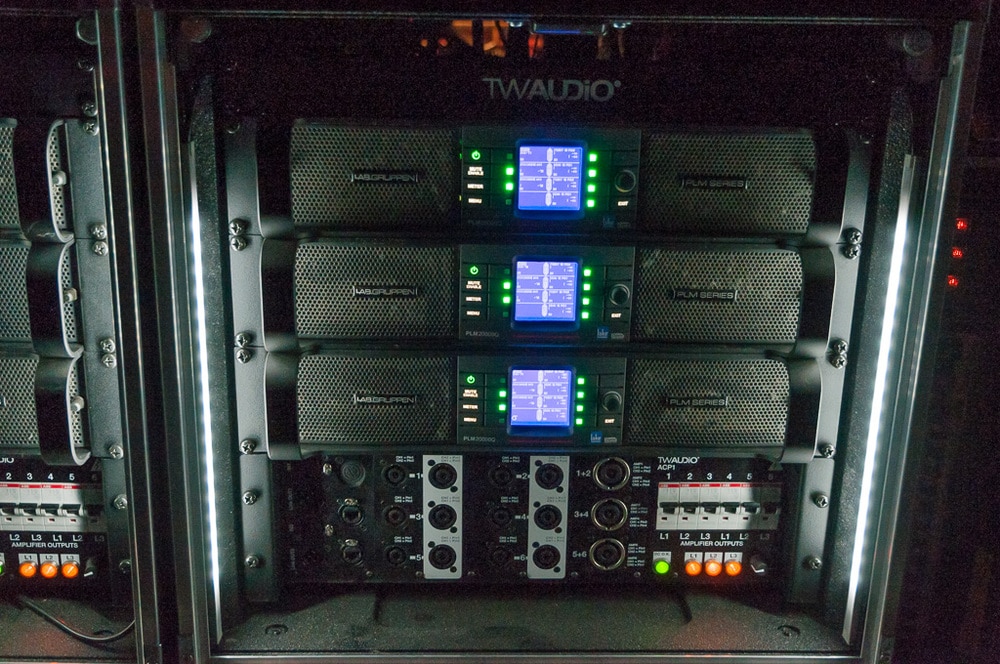 Zum Einsatz kam daher testweise ein komplettes Lab.gruppen-Verstärkerrack mit fünfzehn Exemplaren PLM20000Q, für das TW Audio gerade die korrekten Settings erarbeitete. Für den Hersteller ist das natürlich kein ganz trivialer Schritt, sondern mit einem erheblichen Aufwand verbunden, möchte man denn einen seriösen Support für so eine ergänzende Plattform anbieten. Marco Deinl zu den Beweggründen, auch in Richtung Lake-Controlling zu denken: „Es ist einfach so, dass die Kunden aus der – ich sage mal – mittleren Schicht einfach die Möglichkeit haben müssen, ihre Systeme zu kontrollieren. Schon mit zehn, zwölf oder 14 Amps. Das ist unabdingbar. Selbst kleinere und mittlere Betriebe nutzen heute die Möglichkeit mehrere Amps zu steuern, z. B. bei der Bildung von cardioiden Sub-Arrays, Time Alignment von Tops zu Subs etc. Armonia und Lake sind unserer Meinung nach die zwei ausgereiftesten Plattformen, die die Administration von Systemen nach relativ kurzer Einarbeitungszeit ermöglichen.“ Beispielsweise gab es aus dem Ausland verstärkt Anfragen von Kunden, die
